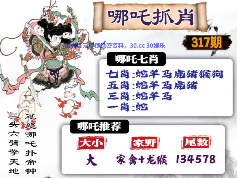 | 318期: ①七肖中特:狗鼠兔龙猪牛猴 ②大小中特:小数 ③家野+2肖:家禽+蛇鼠 ④精准六尾:123457 |